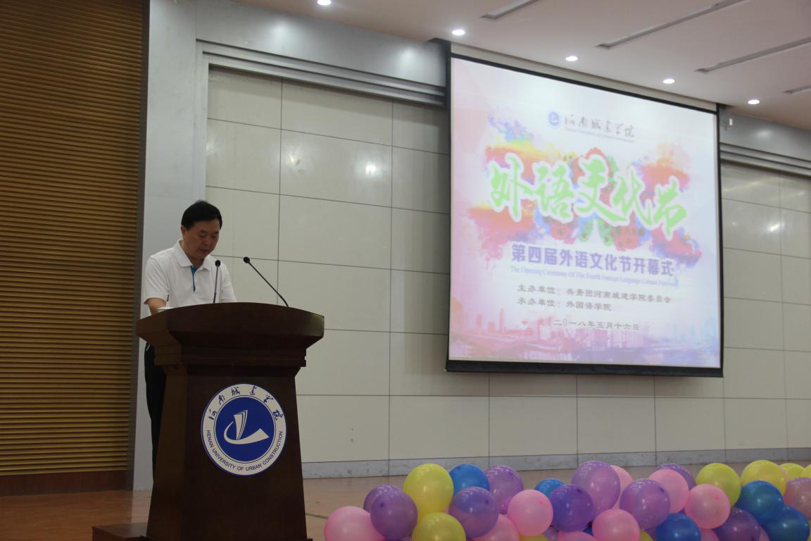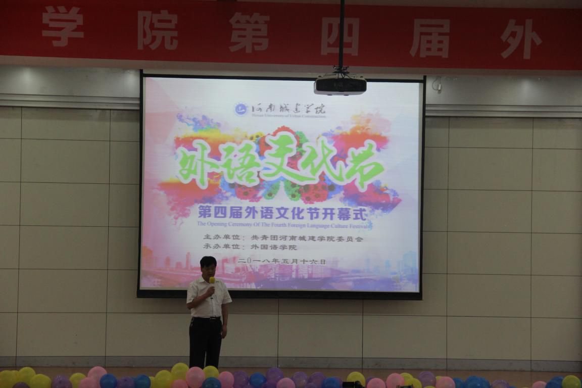 校党委副书记张坤书宣布河南城建学院第四届外语文化节开幕。
