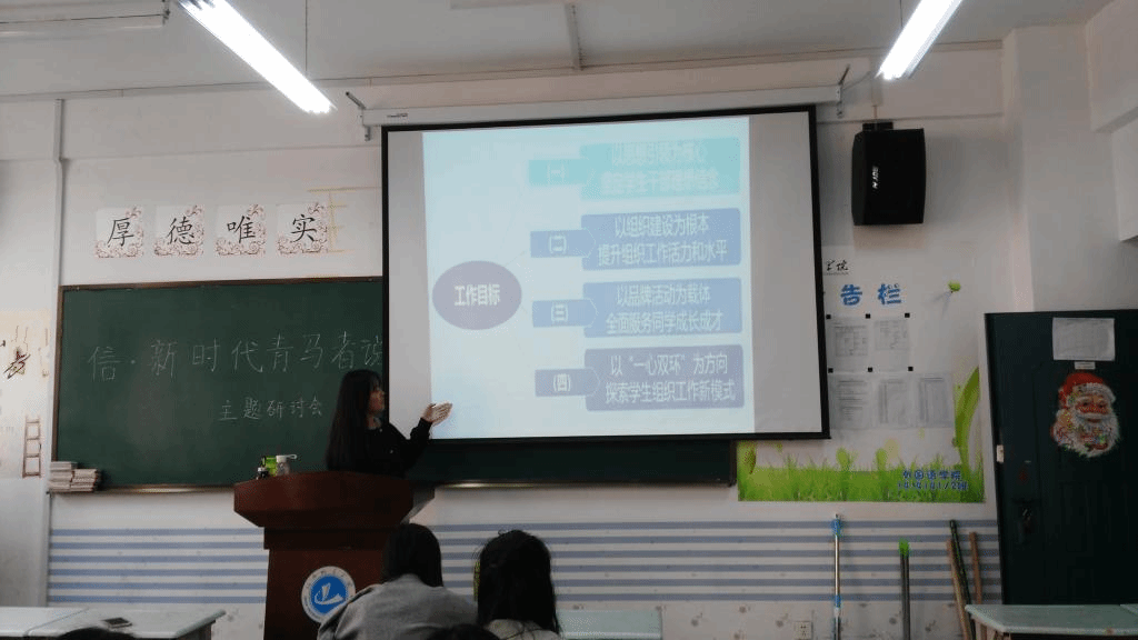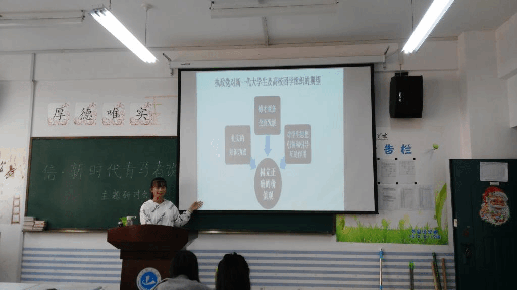 会上,张秋梦对青马工程做了简单介绍,号召大家要做中国特色社会主义思想的积极拥护者和坚定信仰者。随后,优秀学生代表赵婷婷与张淑鑫为同学们分享自己在学习与工作中的经验。针对同学们提出的问题,两位代表均悉心回答。最后,张秋梦宣读倡议书,呼吁同学们践行十九大精神,点亮校园文明之火。