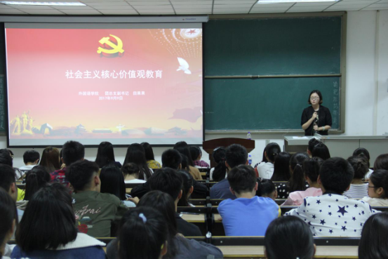 本次讲座以“社会主义核心价值观教育”为主题。讲座中,田果果强调了学习社会主义核心价值观的重要性,深入剖析社会主义核心价值观的内涵及作为一名当代大学生应如何践行社会主义核心价值观,实现伟大的中国梦。同时,田果果要求大家把社会主义核心价值观内化于心中,外化于行动,做一名又红又专、德才兼备的社会主义合格建设者和可靠接班人。