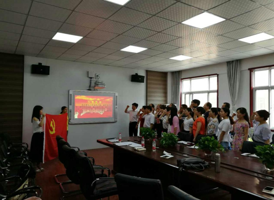 会上,党总支副书记于修涛带领全体党员教师重温入党誓词,铿锵有力的誓言激荡回响,表达着对党的忠诚和热爱。