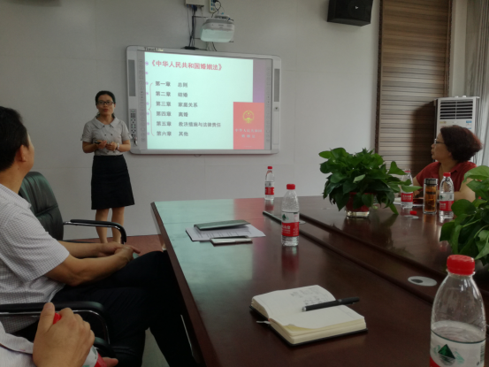 (通讯员 张换成)为使教职工更深一步了解新婚姻法,倡导平等、和睦、文明的婚姻家庭关系,普及有关婚姻家庭的法律知识,增强教职工依法维权的意识,6月30日上午,我院邀请武汉大学博士生、法学院教师苏芸芳在会议室做了一场关于《新婚姻法》专题的普法讲座。学院党总支书记袁晓、院长秦平新、党总支副书记于修涛、副院长董星华和全院教职工一起聆听了讲座,讲座由董星华主持。