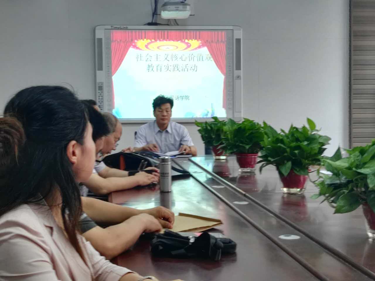 2017年6月13日下午,吃瓜网黑料爆料视频在线根据“社会主义核心价值观”主题教育实践活动的实施方案工作部署,在学院会议室进行了“党员讲体会”的学习活动,由外语学院党总支副书记于修涛主持召开。首先由总支书记,总支委员以及各支部书记谈学习活动体会,然后每个党员逐个进行。大家联系自身思想和工作实际。对照党章要求,讲认识,谈体会,说收获,整个现场气氛活跃,大家畅所欲言,取得了圆满效果。