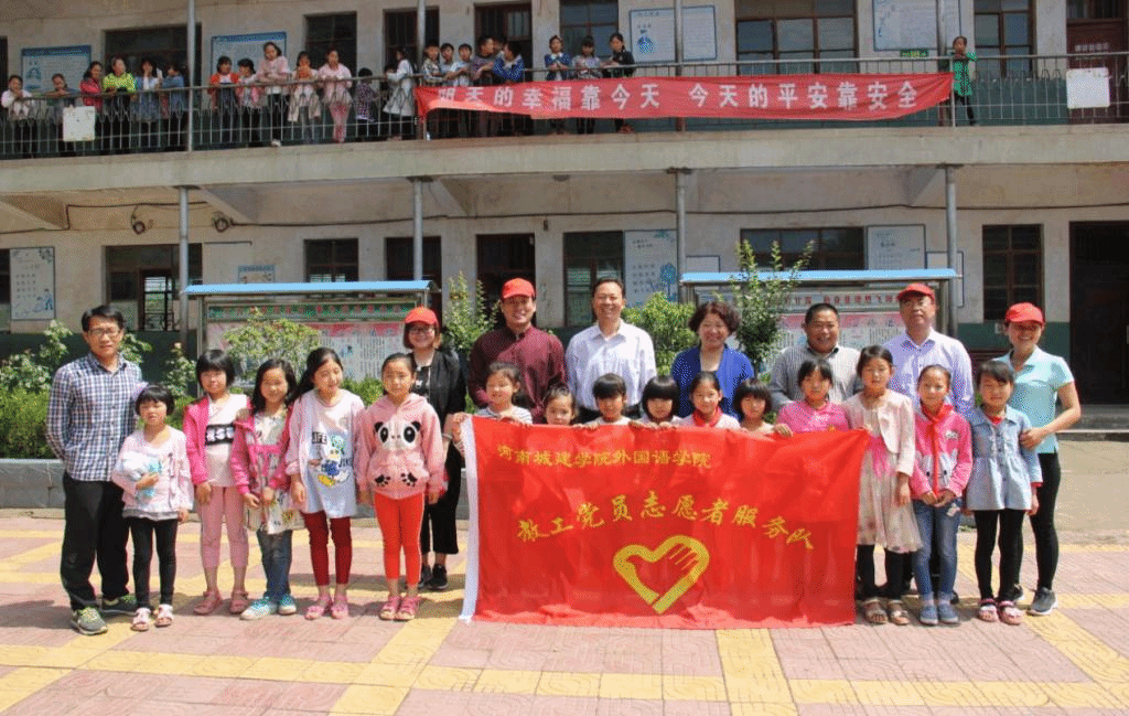 在了解到鲁山县库区乡搬走岭村第一小学学生多为留守儿童的情况后,我院为当地小学生送去了笔、本、篮球、足球等,希望孩子们好好学习,健康成长。结合专业特点和学生情况,经过一周多的精心准备,青年党员教师张枭枭为五年级学生送上了一节生动活泼的英语课,激发了孩子们的学习兴趣。