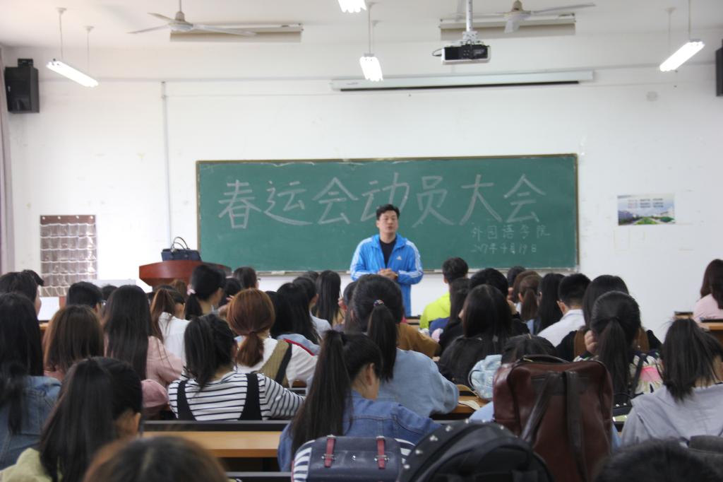 (通讯员:张枭枭 樊明月)为迎接即将到来的春季运动会,吃瓜网黑料爆料视频在线于4月19日上午10:00在文管校区一号教学楼307教室举行了春运会动员大会,我院党总支副书记于修涛、大一辅导员张枭枭、全体学生会成员以及所有运动员参加了本次大会。