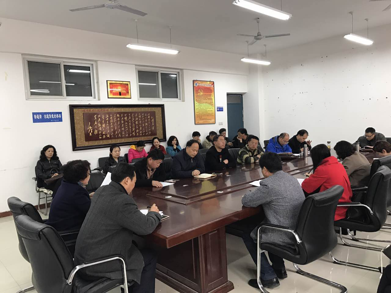袁书记首先传达了张惠贞书记和王召东校长在全校争创全国文明单位动员大会中的主要精神。袁书记强调,全体教师一定要牢记张书记关于争创工作的“三点意见”和王校长提出的“三点要求”。