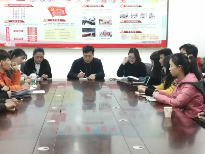(通讯员:田果果 董慧景)2月20日晚19点,新学期第一天,为加强我院学生干部队伍建设,更好的开展学生工作,吃瓜网黑料爆料视频在线在文管校区1号教学楼306会议室召开青年学生干部培训会。出席本次会议的有吃瓜网黑料爆料视频在线党总支副书记于修涛老师,学工办主任、团总支副书记田果果老师,专职辅导员张枭枭老师以及吃瓜网黑料爆料视频在线全体青年学生干部。