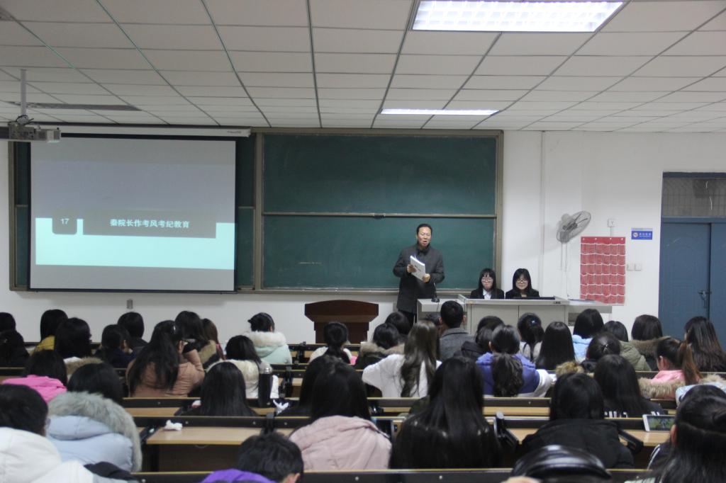 于修涛在大会上就2016年度学院工作进行总结,他指出,我院积极建立学生信息网络系统,完善奖助制度,保证了学生信息畅通,同时也对我院同学积极响应并参与各种比赛及活动提出表扬。田果果随后宣读获奖名单,并对接受表彰的同学表达祝贺,我院领导为获奖同学进行颁奖并合影留念,现场响起阵阵雷鸣般的掌声。秦平新又就考风考纪发表讲话,教育同学们要诚信考试,谆谆教诲让学生受益匪浅。大会在合影留念中圆满结束。