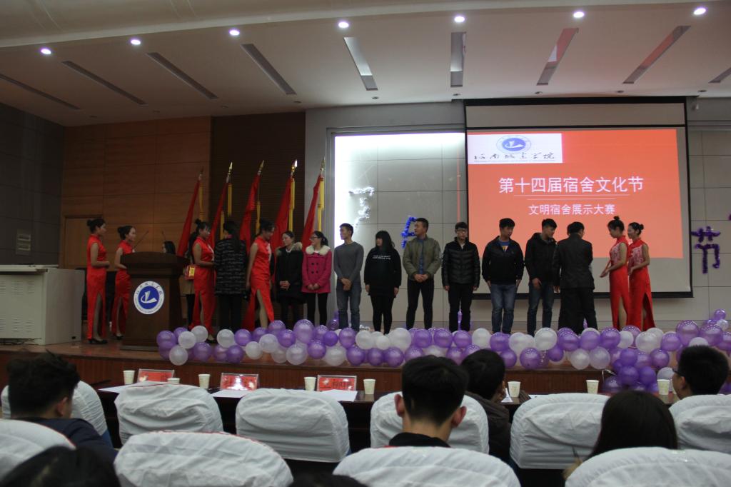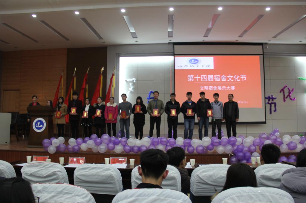 本次决赛秉承公平公正的比赛原则,历时三个小时,现场气氛紧张而激烈。期间,杜留记和卫柳艳分别上台致辞,表达对本届宿舍文化节的美好希冀,调动了大家的激情。来自各个学院的参赛代表队激烈角逐,依次展示了宿舍风采,呈现了各具特色的宿舍文明,突出了“共创文明和谐宿舍,共建城建美好家园”的主题,赢得了现场的阵阵掌声。赛后,由杜留记和卫柳艳共同为获奖宿舍代颁奖,并合影留念。本次决赛到此圆满落幕。