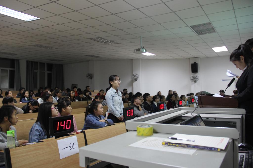 本次比赛得到了我院同学们的积极响应,各年级学生踊跃报名,共有13组选手参加比赛。比赛开始前,各组选手先通过抽签的方式决定比赛顺序并且依次对抢答器进行了调试。随后,由主持人介绍比赛目的、现场评委人员以及比赛流程、规则和评分标准,并且宣布比赛正式开始。比赛过程中,各代表队在底分均100分的情况下,以必答题、抢答题和集体做答题的得分累计各队的成绩。现场气氛紧张而激烈,各队选手才思敏捷,沉着冷静、简洁清晰地回答问题,整场比赛激烈有序地进行了两个多小时。最后,角逐出了总得分为前三名的队伍,比赛到此圆满结束。
