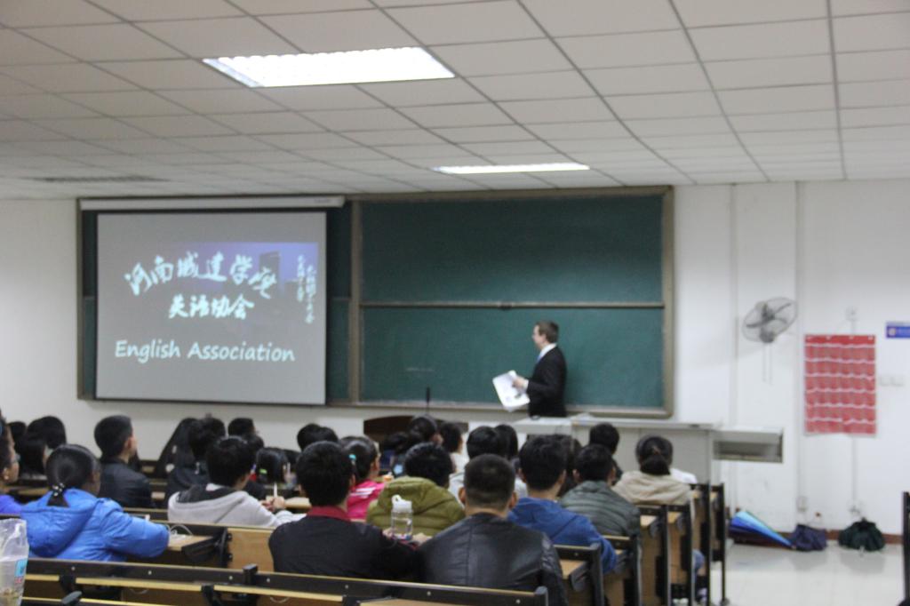 在交流会中,Jack以“how to study English at college”为题,向大家介绍了英语学习时需要注意的问题,同时跟大家分享了苏格兰学生的学习方法。田果果老师主要向大家介绍了英语四六级考试的相关内容。在最后新生提问环节,外教及田老师为同学们答疑解惑。