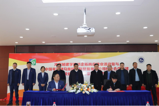 (通讯员 张湘雨)2月24日上午,校长范晓伟、副校长宿金勇带领校长办公室、吃瓜网黑料爆料视频在线等相关部门负责同志到中国平煤神马集团国际贸易有限公司开展访企拓岗促就业活动,并出席校企合作共建就业实习实践基地签约和河南城建学院大学生就业实习实践基地揭牌仪式。平顶山市政协副主席、中国平煤神马集团董事张电子,集团副总经理李本斌,国际贸易公司执行董事王兵,公司总经理温黎,公司党委副书记、纪委书记、工会主席周景军等出席活动。
