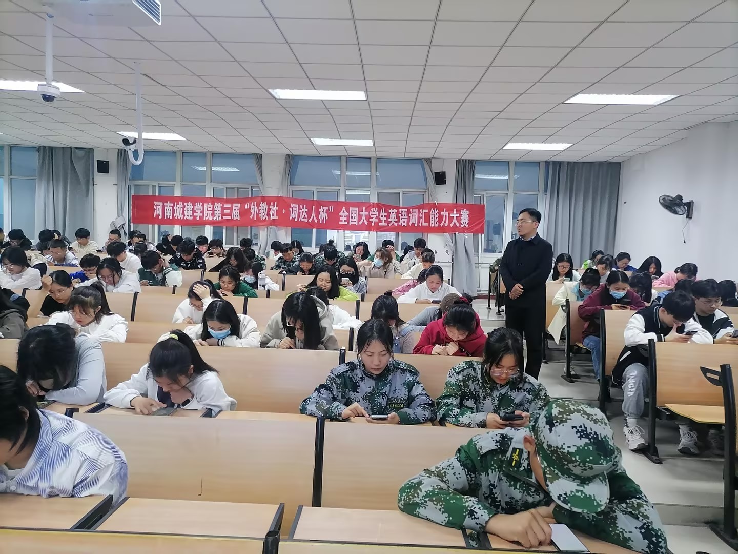 (通讯员郝心)为推动大学生深入学习习近平新时代中国特色社会主义思想,贯彻落实党的二十大精神,弘扬中华优秀传统文化,激发大学生学习英语的热情,4月9日晚,由校团委、学生处、教务处主办、吃瓜网黑料爆料视频在线承办的第三届“外教社•词达人杯”大学生英语词汇能力大赛在和谐校区1号楼举行。此次大赛共设有7个考场,764名在校生参赛。本次大赛分为本科英语专业组和本科非英语专业组两个组别,依托外教社“词达人”英语词汇智慧学习平台,采取手机答题在线比赛形式,本科英语专业组重点考查英语专业四、八级相关词汇及课程思政相关词汇,本科非英语专业组重点考查大学英语四、六级相关词汇及课程思政相关词汇。考试过程中,所有参赛学生认真作答,严格遵守考风考纪,展现出我校学子良好的精神面貌和优良的考风。比赛结束后平台自动生成比赛成绩和排名,各组别排名前10%的参赛选手将被推荐参加省赛。