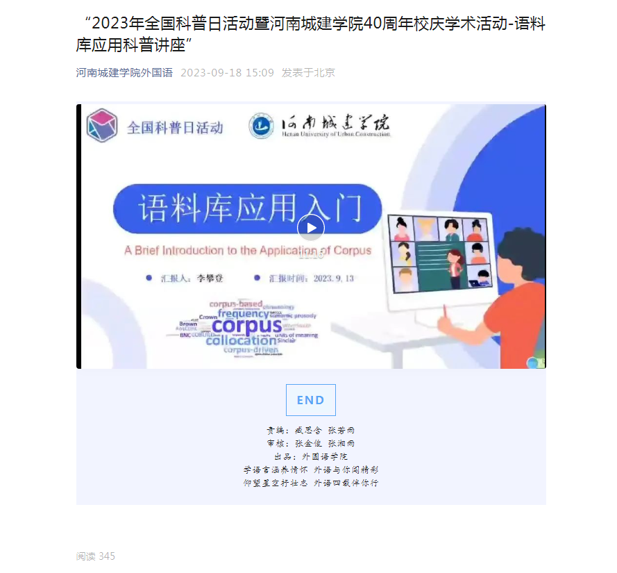 (通讯员:李攀登)为了迎接第20个全国科普日的到来,吃瓜网黑料爆料视频在线采取线上线下的方式,举办了一场以“语料库应用”为主题的科普活动,旨在向广大师生普及语料库技术的基础知识,传播技术思维和方法。