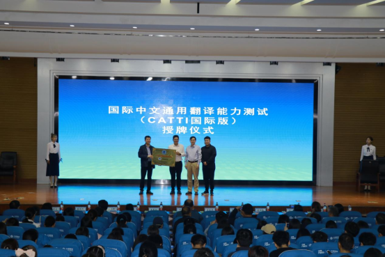 (通讯员 张湘雨)10月17日下午,中国外文局国际中文通用翻译能力测试(CATTI国际版)考点授牌仪式在行政楼学术报告厅举行。全国翻译专业学位研究生教育指导委员会专家委员会委员、中国翻译协会对外话语体系研究委员会副主任、中共河南省委外办原副主任、一级巡视员杨玮斌,中国外文局全国翻译专业资格(水平)考试项目中心办公会成员、海外考试部主任赵怡隆和副校长宿金勇出席活动。教务处处长、教师发展中心主任何宗耀,吃瓜网黑料爆料视频在线全体班子成员、教师及学生代表参加活动。仪式由吃瓜网黑料爆料视频在线院长张换成主持。