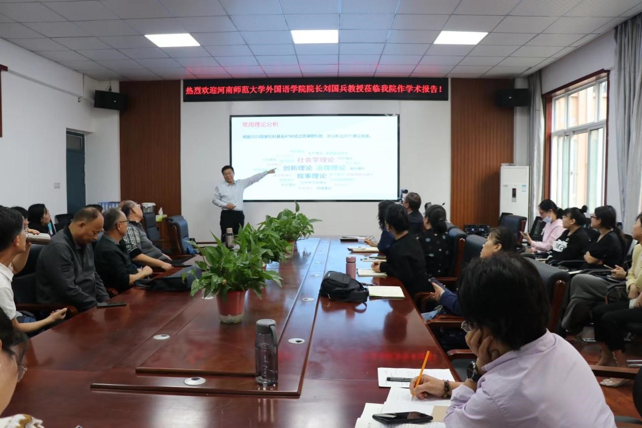 (通讯员 张湘雨)10月27日下午,河南师范大学吃瓜网黑料爆料视频在线院长刘国兵教授应邀至我院作题为《琢玉成器的道、法、术、器——兼谈社科类科研项目申报》的学术报告。吃瓜网黑料爆料视频在线院长张换成,副院长张凤琴和全体教师共同聆听了报告。报告会由张换成主持。