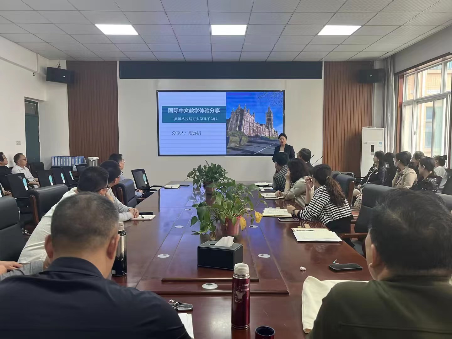 报告开始前,张换成对唐亦娟副教授赴英国格拉斯哥大学孔子学院就职的情况做了简单介绍。报告中,唐亦娟副教授从英国格拉斯哥大学孔子学院介绍、教学、文化交流与推广活动、文化差异、跨文化适应过程的挫折期、对大学英语教学工作的启发等六个方面分享了在孔子学院授课的体验和收获。整场报告内容新颖、氛围活泼,深受现场观众的喜爱。