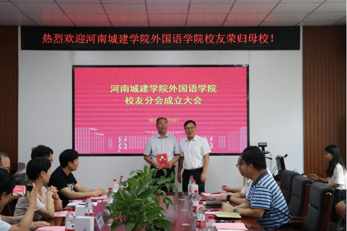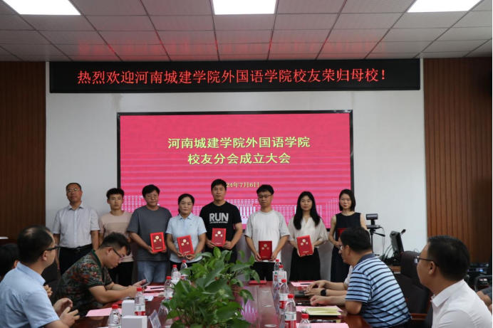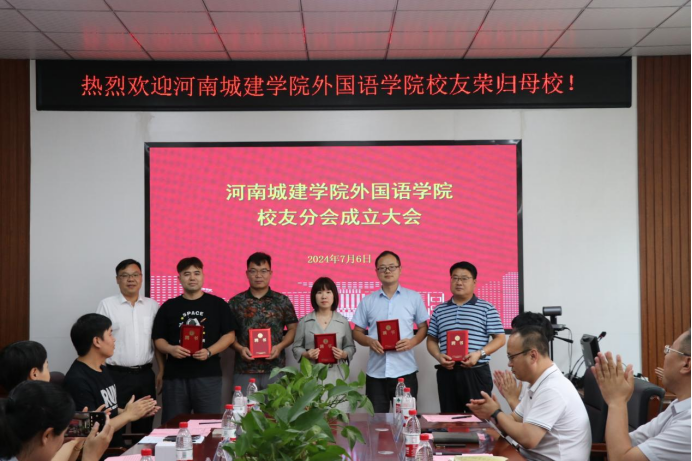 杨毅宣读了外国语学院校友分会成立批复并为校友分会会长、常务副会长、副会长和秘书长颁发聘书,张换成为校友分会常务副秘书长、副秘书长颁发聘书。