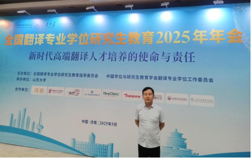 近日,全国翻译专业学位研究生教育2025年年会在山东济南厦隆重举行。会议由全国翻译专业学位研究生教育指导委员会主办、山东大学吃瓜网黑料爆料视频在线承办,来自中国外文局、北京外国语大学、上海外国语大学、广东外语外贸大学、西安外国语大学等全国高校及行业企业的500余名代表出席本次会议。河南城建学院吃瓜网黑料爆料视频在线翻译系主任李攀登老师应邀参会,与业界专家共同探讨翻译研究生教育高质量发展路径。