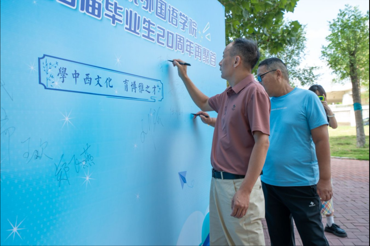随后,校友们来到学院精心布置的签名墙处再次在母校留下自己的名字并在1号楼306会议室参加座谈交流。