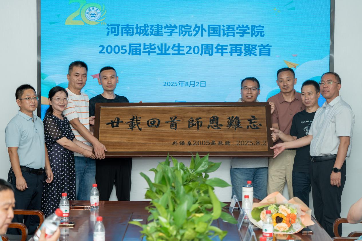 最后,校友们为恩师献上鲜花,为学院赠送刻有“廿载回首,师恩难忘”的匾额,并捐献了2002年至2005年间校友们在校学习生活期间的宝贵照片和文字资料。活动在集体大合照后落下帷幕。