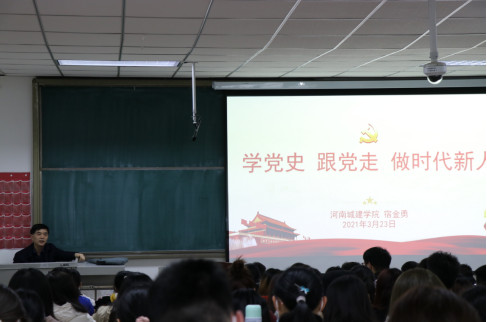 3月23日下午,副校长宿金勇在文管校区428教室以“学党史,跟党走,做时代新人”为主题,为吃瓜网黑料爆料视频在线学生上形势与政策课。