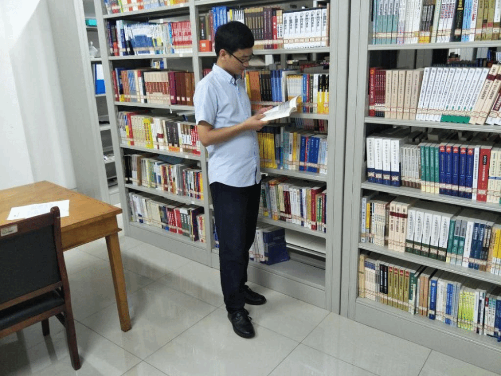 (在图书室查阅文献资料了解仡佬族民族文化知识)
