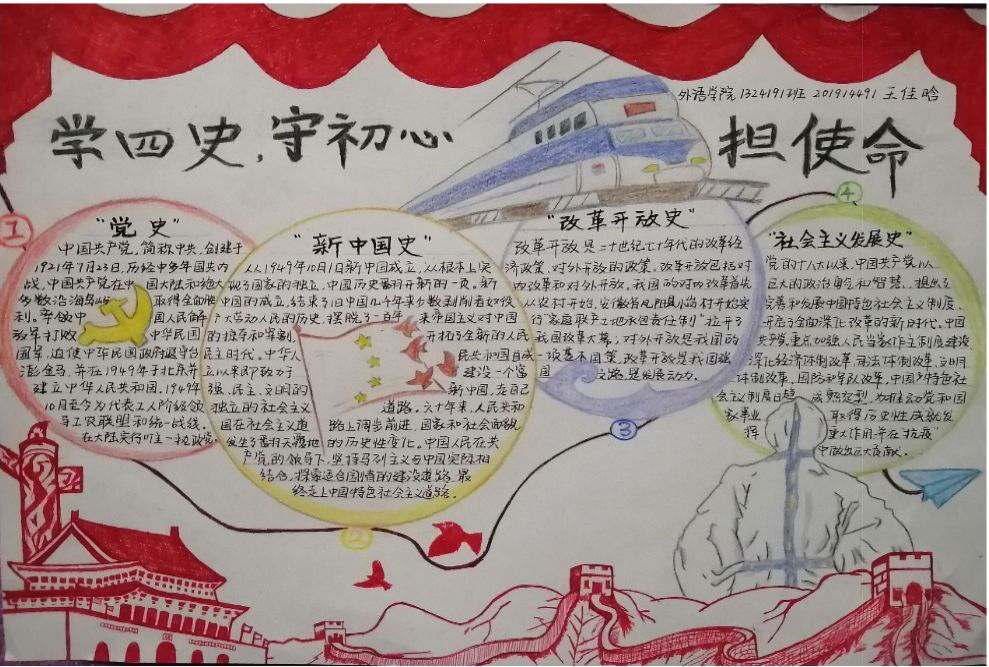 “四史”线上学习活动。在“四史”知识线上学习过程中,学生们通过网络参观了全国各地的红色展馆,聆听了多位馆长的精彩演讲,了解了展馆背后的革命故事,领悟到了其中所蕴含的红色精神。同学们通过追寻伟人们的足迹进一步学习红色历史,从而对革命历史有了更为全面的了解。