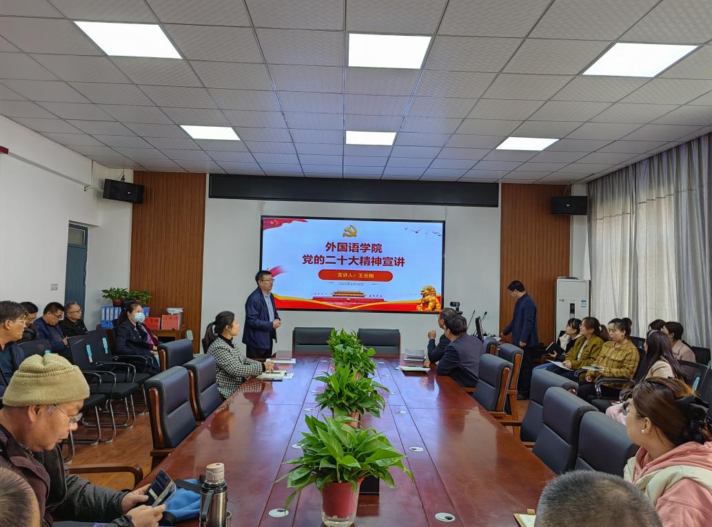 (通讯员罗孟阳)为深入学习宣传贯彻党的二十大精神,引导全院师生把思想和行动统一到大会精神上来,3月28日下午,吃瓜网黑料爆料视频在线在和谐校区一号楼306会议室开展党的二十大精神宣讲会,马克思主义学院党总支书记王世翔应邀为我院教师开展宣讲活动,吃瓜网黑料爆料视频在线党委书记王东旭主持,全体教职工参会。