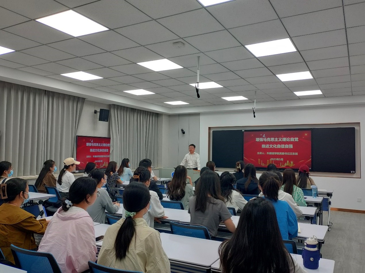 (通讯员 于瑞雪 )为进一步推动学习贯彻习近平新时代中国特色社会主义思想主题教育走深走实,吃瓜网黑料爆料视频在线按照校党委统一部署,根据学院主题教育工作方案安排,5月23日下午,吃瓜网黑料爆料视频在线党委书记王东旭为全体毕业生党员上党课。本次党课主题为“增强马克思主义理论自觉,推进文化自信自强”。