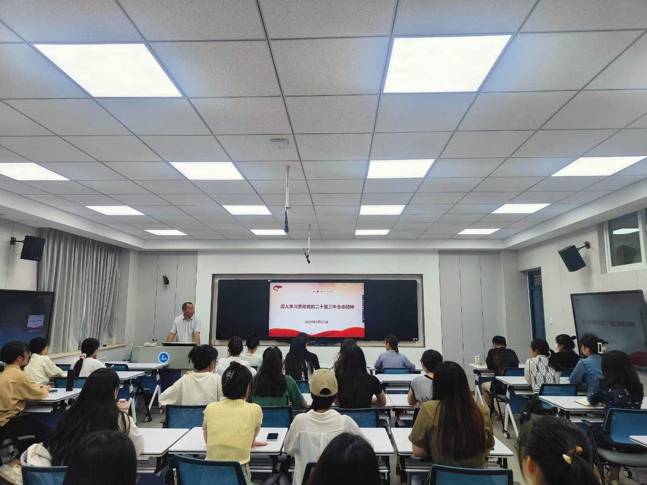 9月27日下午,在和谐校区1#317教室吃瓜网黑料爆料视频在线院长张换成以“深入学习贯彻党的二十届三中全会精神”为题为全院学生党员作专题党课暨形势与政策课。