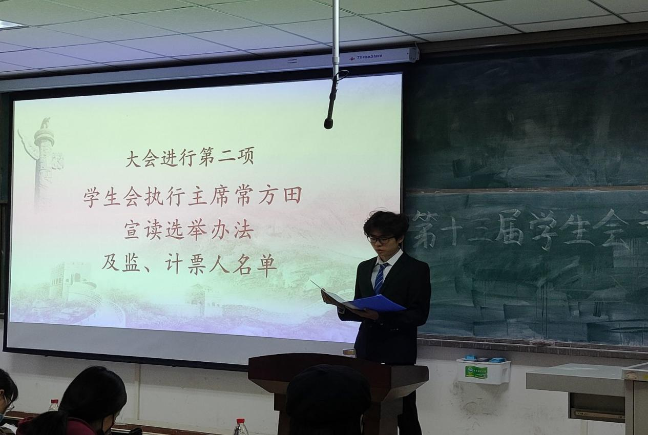 此次竞选大会在庄严的国歌声中拉开帷幕,随后第十二届学生会主席常方田宣读了此次竞选大会的选举办法及监、计票人名单,确保此次竞选大会的公平,公正,公开。接着,各位竞选选手依次上台进行竞选演讲。演讲结束后,各代表秉持公平、公正、公开的原则进行投票。最后,大会在校歌声中落下帷幕。