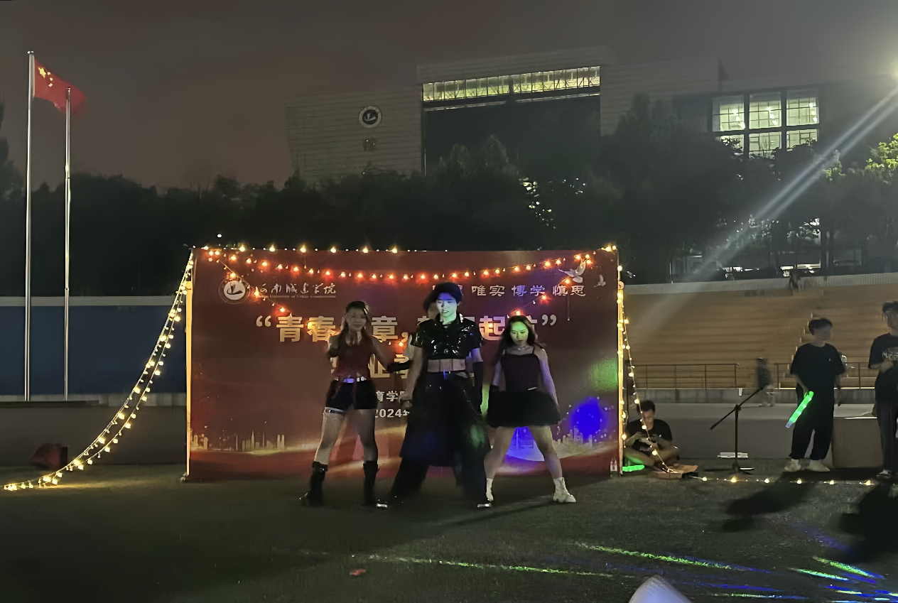 音乐会的节目包含独唱、群舞、乐器演奏、合唱等,除学院毕业生外,还邀请了学校乐队和大学生艺术团现场演出。活动现场布置了喷绘架,旋转彩灯,灯带,准备了荧光棒和互动小礼品,现场观众沉浸其中,感受着属于他们的惬意时光。