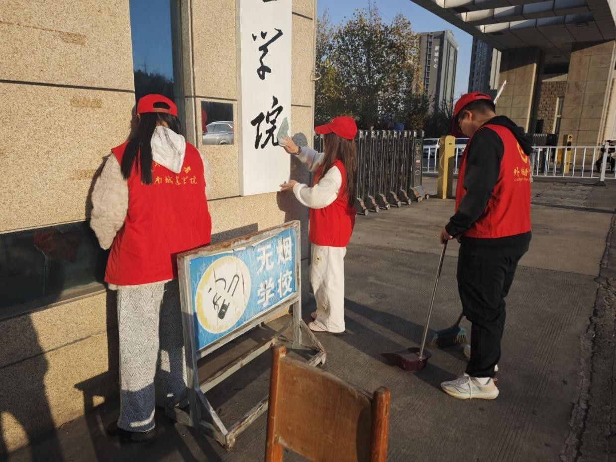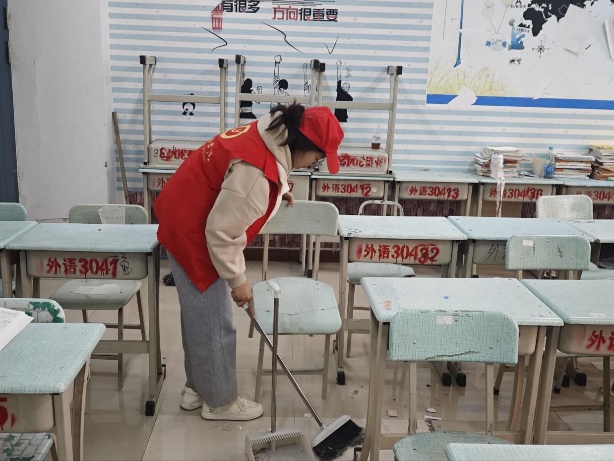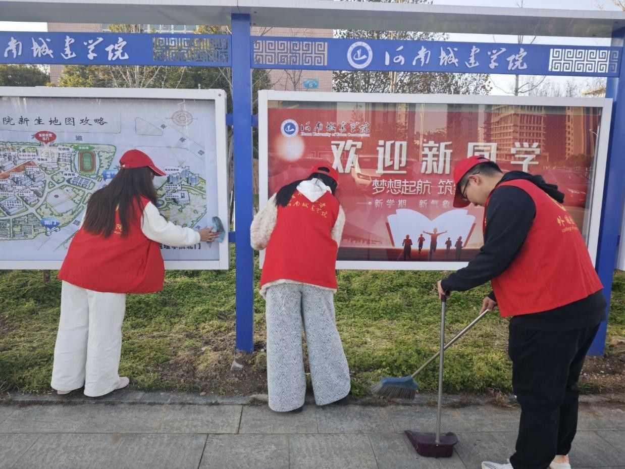 为美化校园环境,筑牢文明校园建设根基,学院青年志愿者协会积极开展“文明践行美环境,志愿清扫焕校园”环境整治行动,聚焦自习室、文苑门口重点区域,以实际行动守护校园洁净。